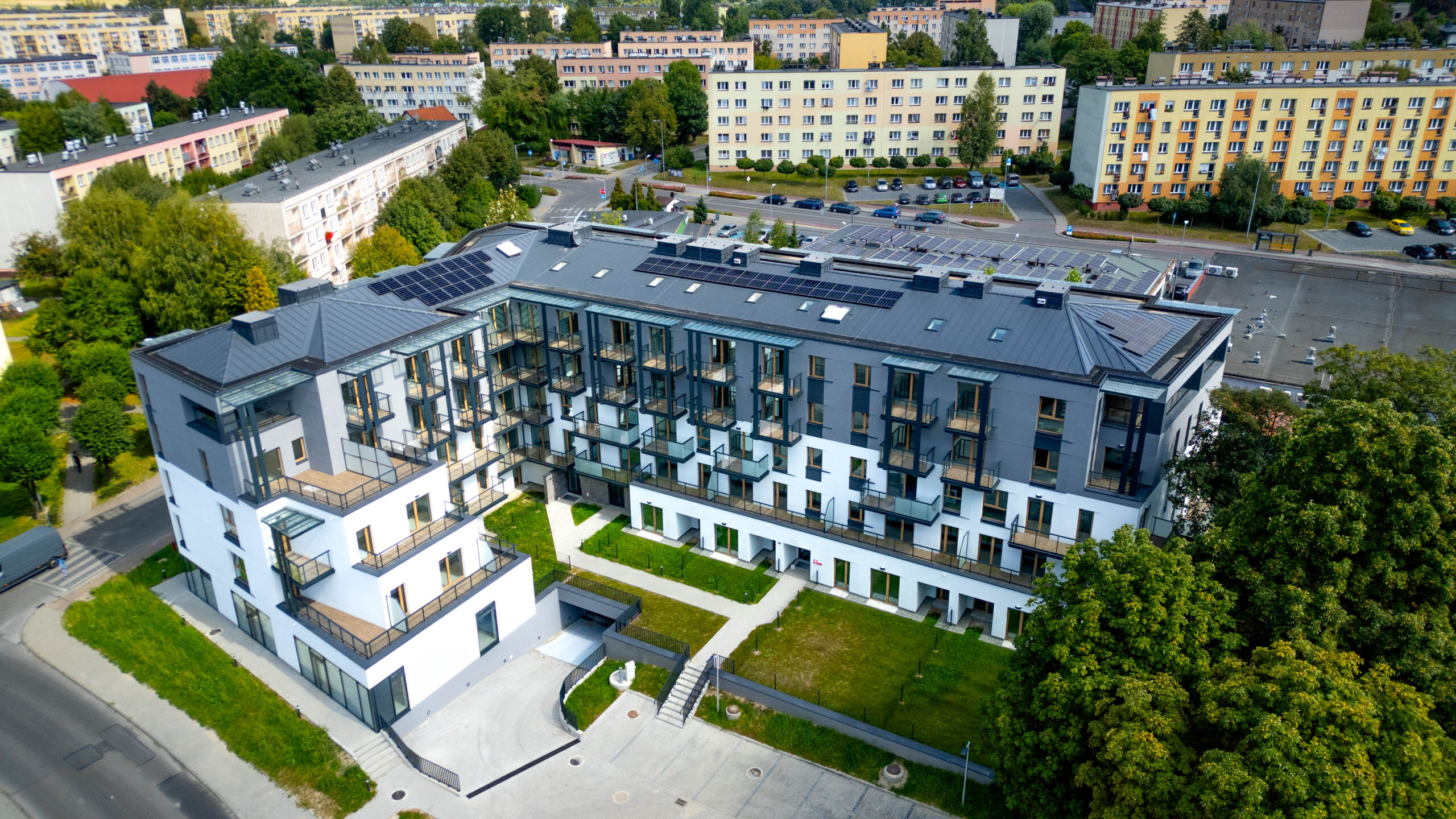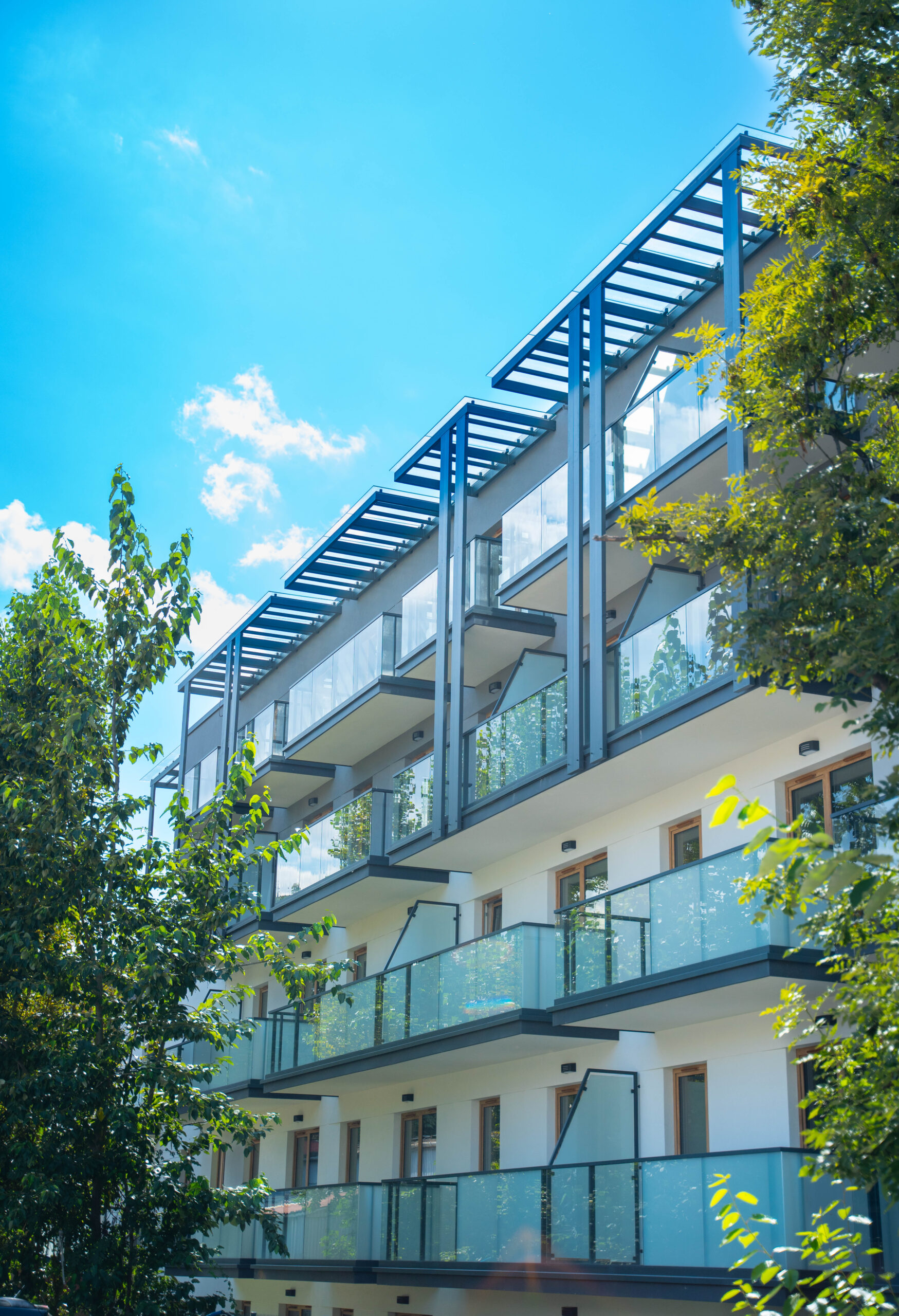 Balustrady stalowe zaprojektowano jako wyrazisty, a jednocześnie nienachalny detal architektoniczny. Precyzyjne linie i solidna konstrukcja podkreślają charakter budynku, zapewniając wysoki poziom bezpieczeństwa. Stalowe daszki balkonowe łączą funkcję ochronną z estetyką. Smukła forma skutecznie zabezpiecza przestrzeń balkonów i harmonijnie dopełnia bryłę obiektu.