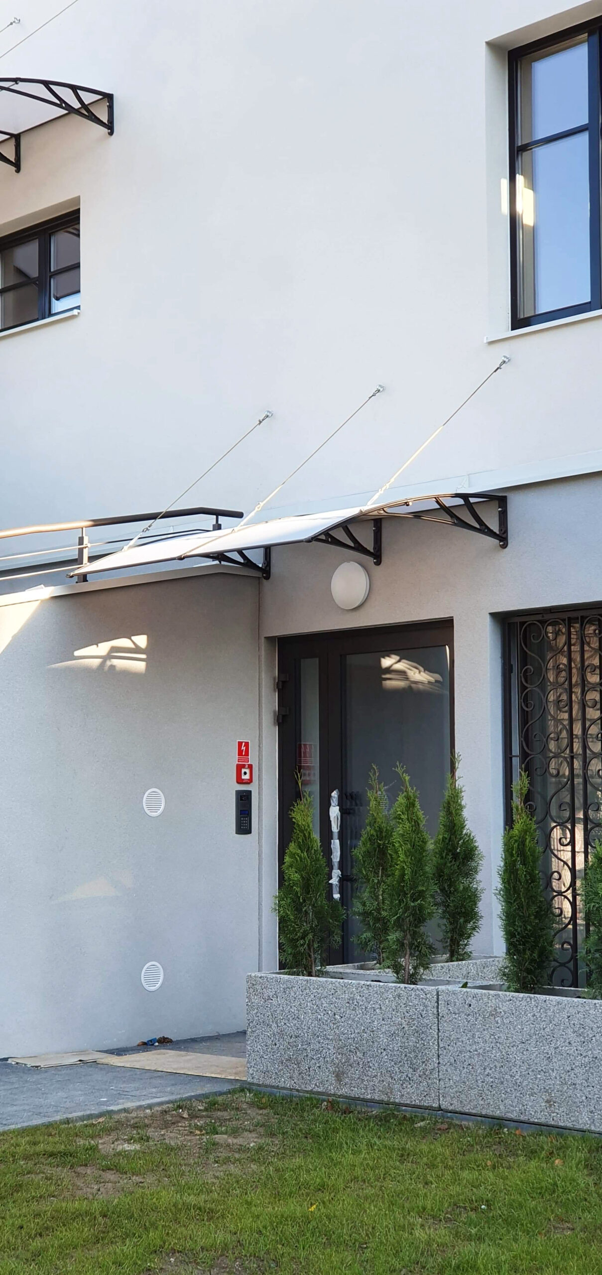 Konstrukcja z czarnej stali – zadaszenie wjazdu na parking podziemny