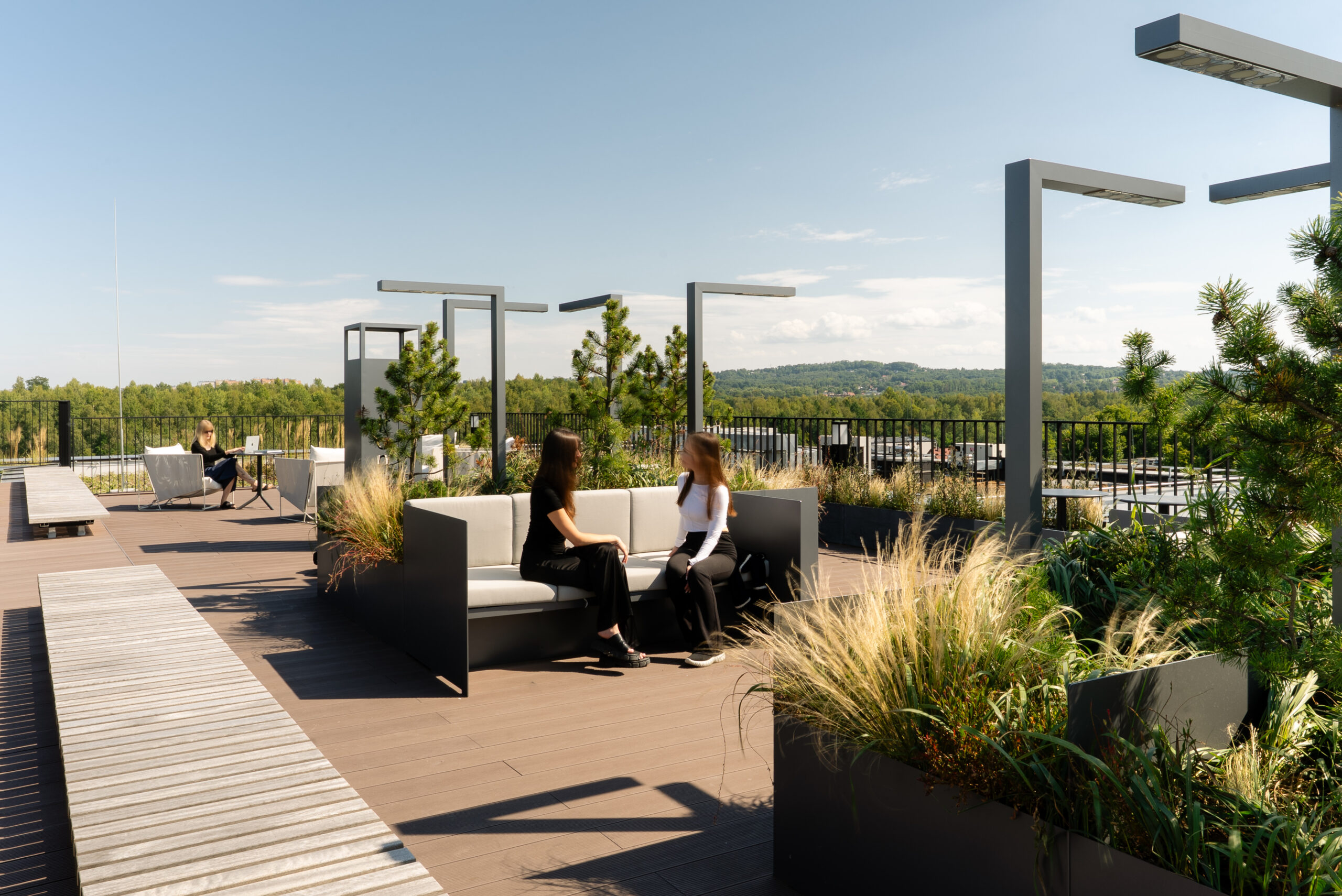 Strefa wypoczynku na dachu wieżowca PROTON to przykład kompleksowego podejścia do designu – od projektu, przez produkcję, aż po montaż. Industrialne meble ogrodowe idealnie wpisują się w nowoczesne przestrzenie biurowe, zielone dachy i tarasy. Minimalizm formy, trwałość materiałów i precyzja wykonania tworzą spójną całość, w której technologia spotyka estetykę.