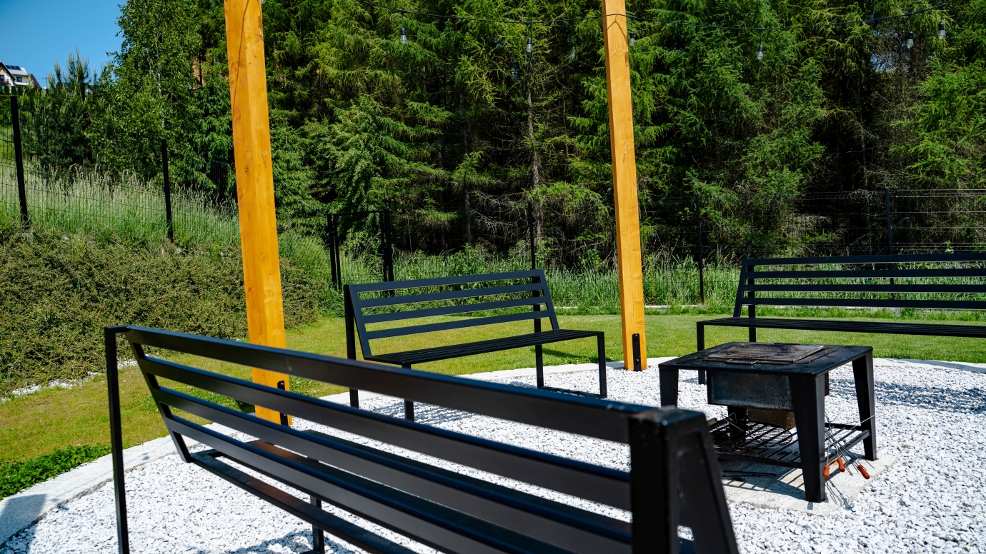 Stalowe ławki i grille ze stali nierdzewnej łączą funkcjonalność z nowoczesną estetyką. Odporność na warunki atmosferyczne i łatwość konserwacji sprawiają, że doskonale sprawdzają się w przestrzeniach wypoczynkowych.